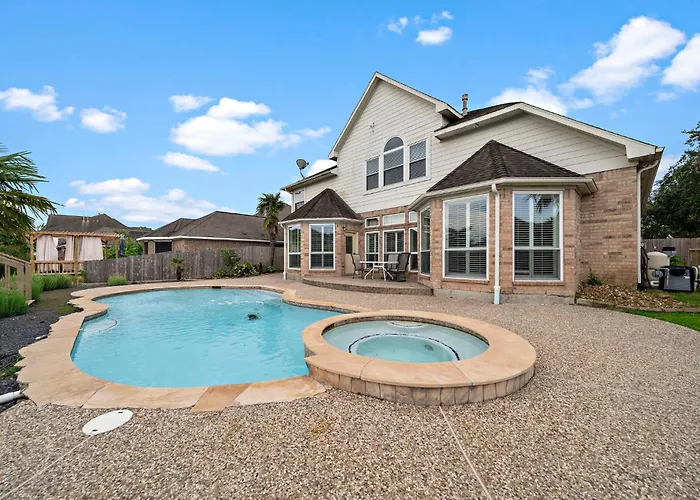 The nearest airport is George Bush Intercontinental - Houston and it is located within 30 minutes' drive from Houston Lake Retreat Pool Lake Front Spa villa.